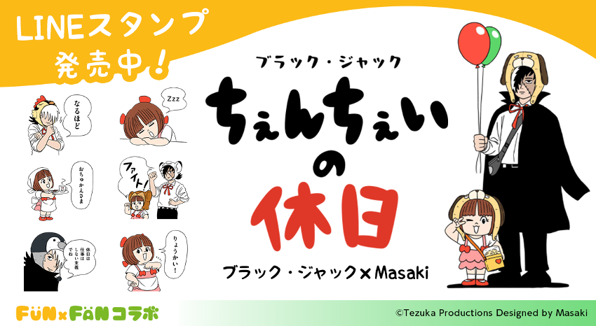 今回「FUN×FANコラボ」からリリースしたのは、日本を代表するマンガ家・アニメーション作家である手塚治虫の人気作品『ブラック・ジャック』と、イラストレーター、Masaki氏のコラボレーション作品『ちぇんちぇいの休日』です。