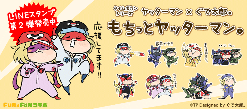 今回は、LINEスタンプ第2弾をリリースしました。ヤッターマン×ぐで太郎。の世界観をお楽しみください。